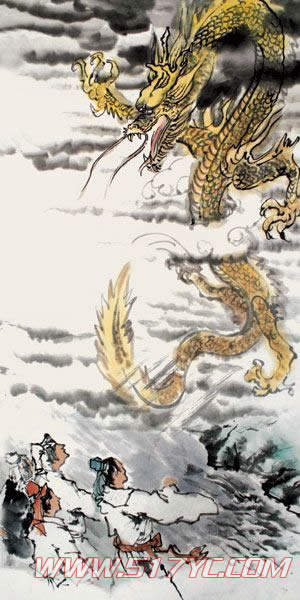 此时,人们又惊又喜,又惧又疑。那个老者道:“后生啊!五龙爷该休息啦!俺们都回去看看河水吧。”