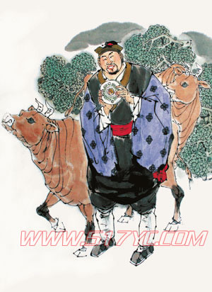 猗顿(约公元前480年~?),原是春秋时代鲁国的贫寒书生,祖辈以耕读为业。到他手里,已是“耕则常饥,桑则常寒”。就在他生计艰难之时,听到了陶朱公(即范蠡)三致千金的消息。于是,猗顿“往而问术焉”。陶朱公热情地接待了他,并告诉他说:“子欲速富,当畜五牸,”(“牸”音字,当作母畜讲,五牸按孙氏注:“牛、马、猪、羊、驴五畜之牸。”)猗顿听了陶朱公的指点,茅塞顿开,很受教益。于是他挈妇将雏,风餐露宿,千里迢迢,适足西河,来到当今晋南一带(今临猗)。他看到峨嵋岭下水草丰茂,土地肥沃,确实是一个天然理想的畜牧场所,就在对泽附近(今王寮村西)定居下来,“大畜牛羊于猗氏之南”。他又看到中条山下盐业资源十分丰富,继而兼营盐业,他的活动范围“西抵桑泉,东跨盐池,南条北嵋”,广大百余里。经过十年苦心经营,终于使他“其息不可计,富拟王公”,和陶朱公齐名,被后世称为“陶猗之富”。他原来并不叫猗顿,为了纪念其发迹之地,因这里古称猗国,故名猗顿。