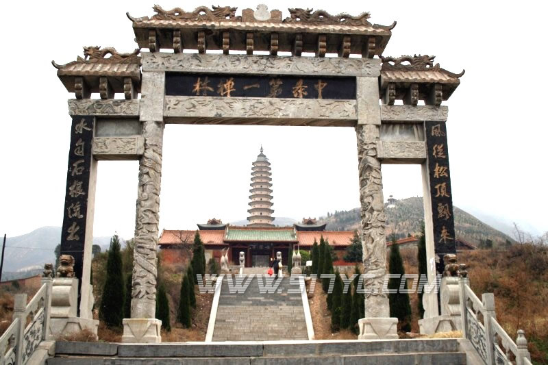 寺院建于中条山腰,从山脚盘旋而上,即入山门,山门处立有“第一禅林”的石门坊。寺院内现存有隋代 所建“大雄宝殿”,殿高五丈。殿后有“药师洞”一座,洞前苍松翠柏蔚然成林。塔院建有青砖结构的宝塔,塔正面的门额上有苍劲有力的明代石刻。塔十三层,外呈八角形,各角悬有风铃,塔顶八角攒尖式,上有八卦悬空铜刹。从塔门内拾砖梯螺旋而上,可达八层。俯瞻远眺,朝霞暮金,华岳三峰,隔河可辨。塔后建有无梁殿,上下两层,共六孔窑,高五米,内阔九米,均为青砖结构,建造精湛,颇为壮观。