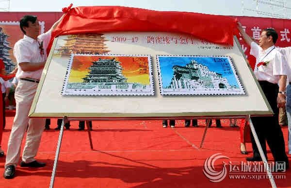 当日上午,国家、省和市的有关领导为《鹳雀楼与金门》特种邮票揭幕。该邮票一套两枚,面值均为1.2元,票面图案为山西永济的鹳雀楼和乌克兰基辅的金门。这是山西省以及运城市第一枚中外联合发行的邮票。为全方位展现鹳雀楼的魅力和风采,邮政部门还专门推出了“鹳雀楼”邮票首发纪念封、首日封、明信片、极限片、邮折、卡书等系列邮品。