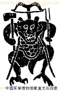 突围成功的黄帝痛定思痛,做了一系列前所未有的精心准备。首先,他亲自到太山找玄女请教战法秘诀,并结合自己的作战经验,创作了兵法《黄帝阴符经》,指挥军队演练出一千八百阵。其次,黄帝打听到东海流波山上有一种怪兽夔(kui,二声),吼声像天空的炸雷一样响亮,就派人把夔杀死,用夔皮做成战鼓,用雷池雷兽的骨头做鼓槌,敲起来“声震五百里”,以鼓舞士气,激励斗志。他还特意召来自己的女儿——专会收风息雨的旱魃(ba,二声)助战,然后同蚩尤展开了最后决战。